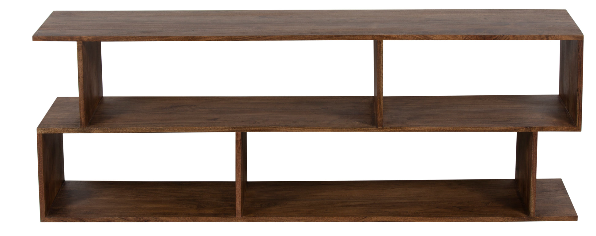 The Portola Cube TV Stand is inspired by a mix of Asian architecture and mid-century modern styling. It features asymmetric compartments which provides ample storage and a lot of look. Made from solid acacia wood, this unique TV stand is a stunning accent piece.